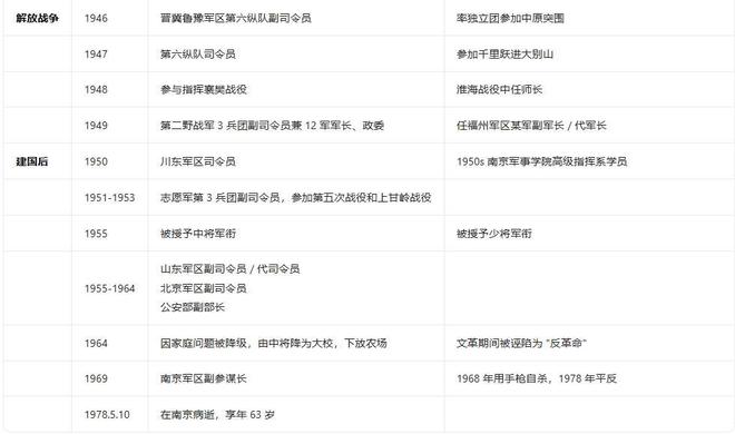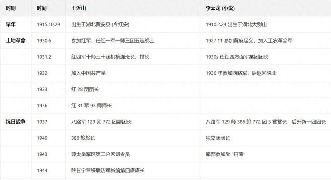 | 王近山 | 15 岁参军,20 岁当师长,1955 年授中将 | 抗日战争后期任386旅旅长,建国后任福州军区副军长兼代军长,少将军衔 | 战绩相似,但后期职位和军衔不同,王近山后期担任太岳军区第二分区司令员 |