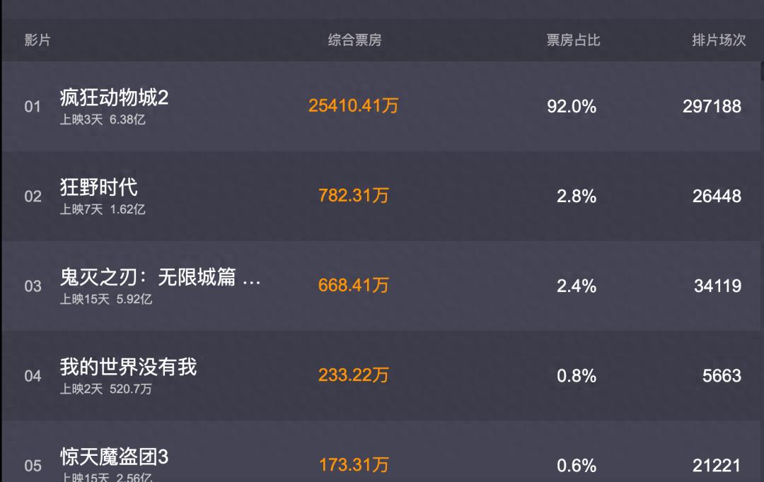 11月底,《疯狂动物城2》上映,三天就拿了6亿票房,预测全年能到25亿,确实很强势。其他电影基本没人关注,排片多但票房低,属于大扑街。《鬼灭》全球票房超7亿,确实厉害。易烊千玺参演的《狂野时代》预售1亿,预测2亿,结果退票率达到16%,太拉胯了。