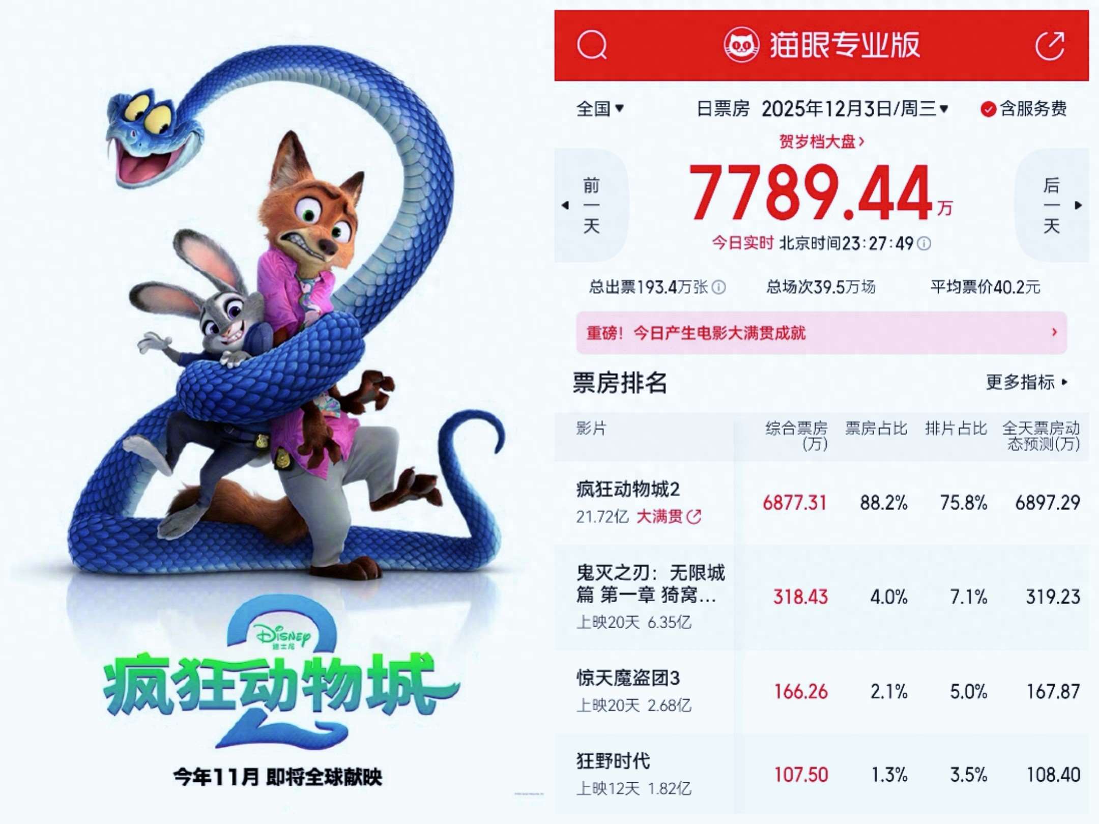 12月3日电影票房情况