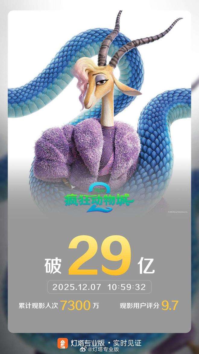 《疯狂动物城2》票房突破29亿