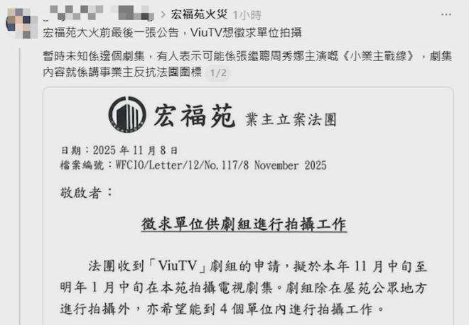 | 火災前 | 業主立案法團發通告 | 借用屋苑予ViuTV拍攝新劇 |